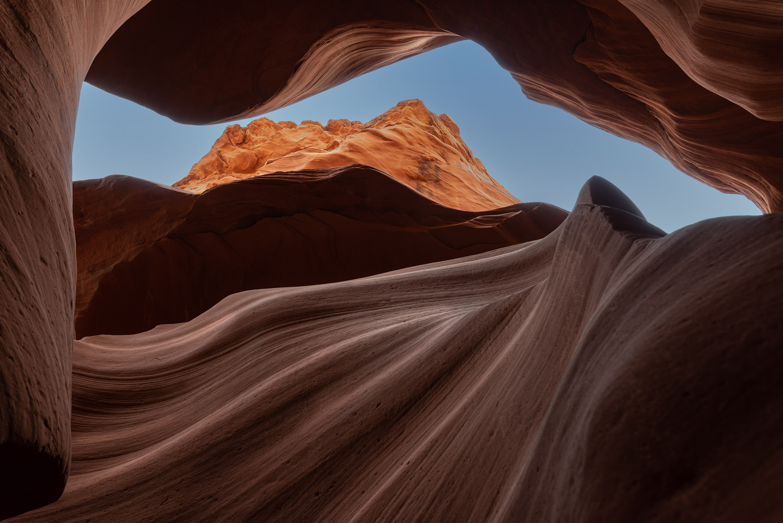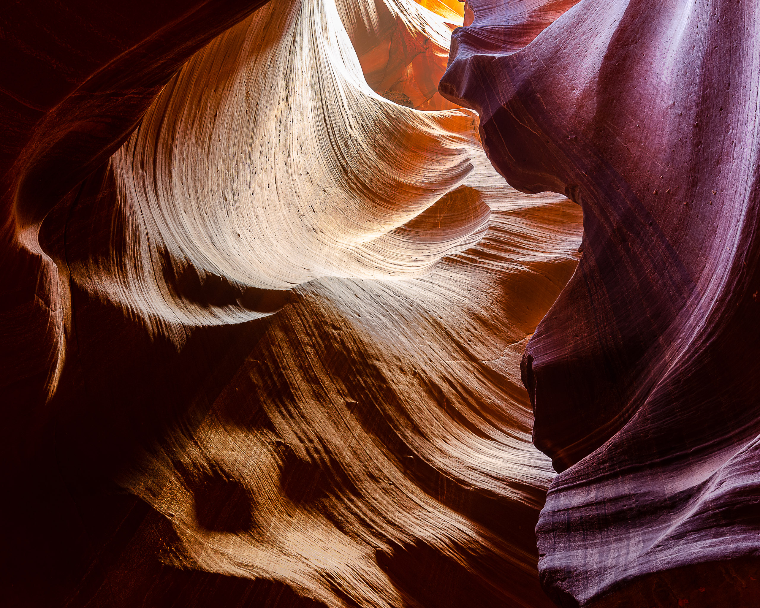 Eu sou engenheiro por formação, logo a fotografia não é tão natural para mim. Nestas situações abstratas, eu preciso de um tempo ainda maior do que eu normalmente levo para compor as imagens. Ali não tem jeito. Programo a câmera para fazer várias exposições num único clique, pois há um contraste muito grande entre o piso do canyon e o céu acima. E disparo para tudo que é lado. Apenas no Lower, fiz perto de mil imagens em uma hora.