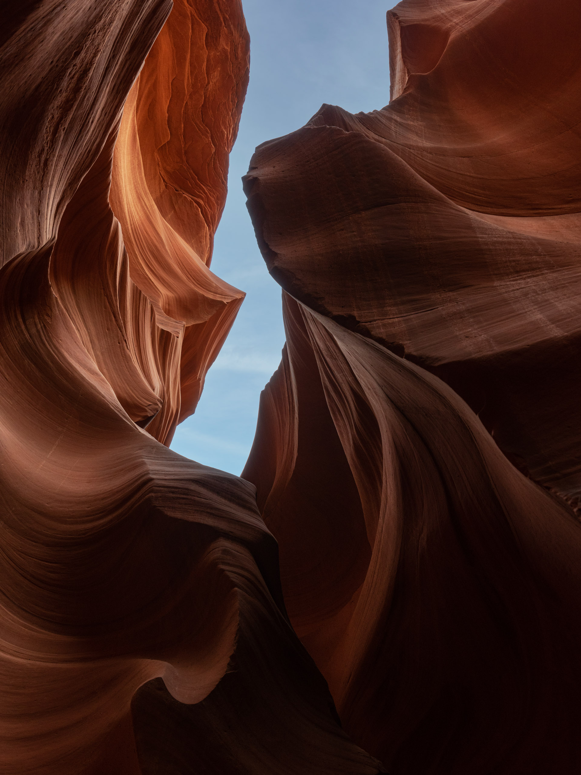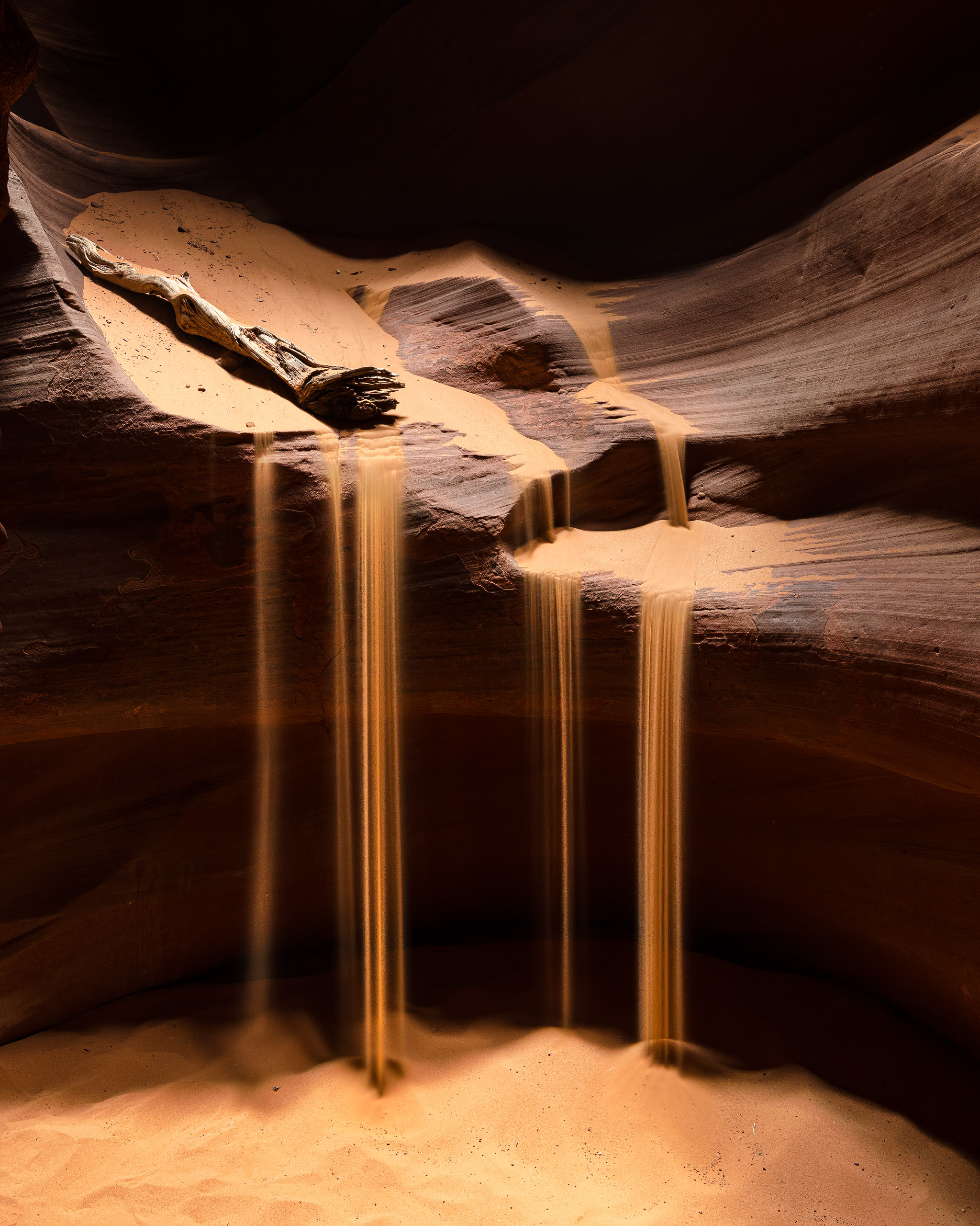 Eu sou engenheiro por formação, logo a fotografia não é tão natural para mim. Nestas situações abstratas, eu preciso de um tempo ainda maior do que eu normalmente levo para compor as imagens. Ali não tem jeito. Programo a câmera para fazer várias exposições num único clique, pois há um contraste muito grande entre o piso do canyon e o céu acima. E disparo para tudo que é lado. Apenas no Lower, fiz perto de mil imagens em uma hora.